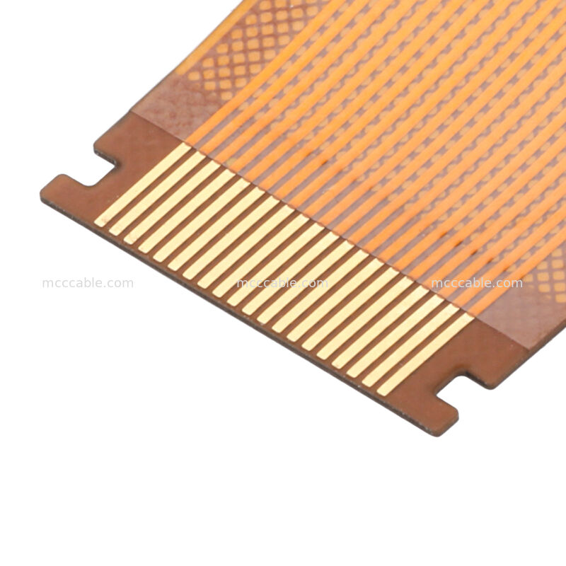 एक लचीला पॉलीमाइड सब्सट्रेट पर उत्कीर्ण तांबे के कंडक्टर, ENIG सोने के अंगूठे के साथ संयुक्त